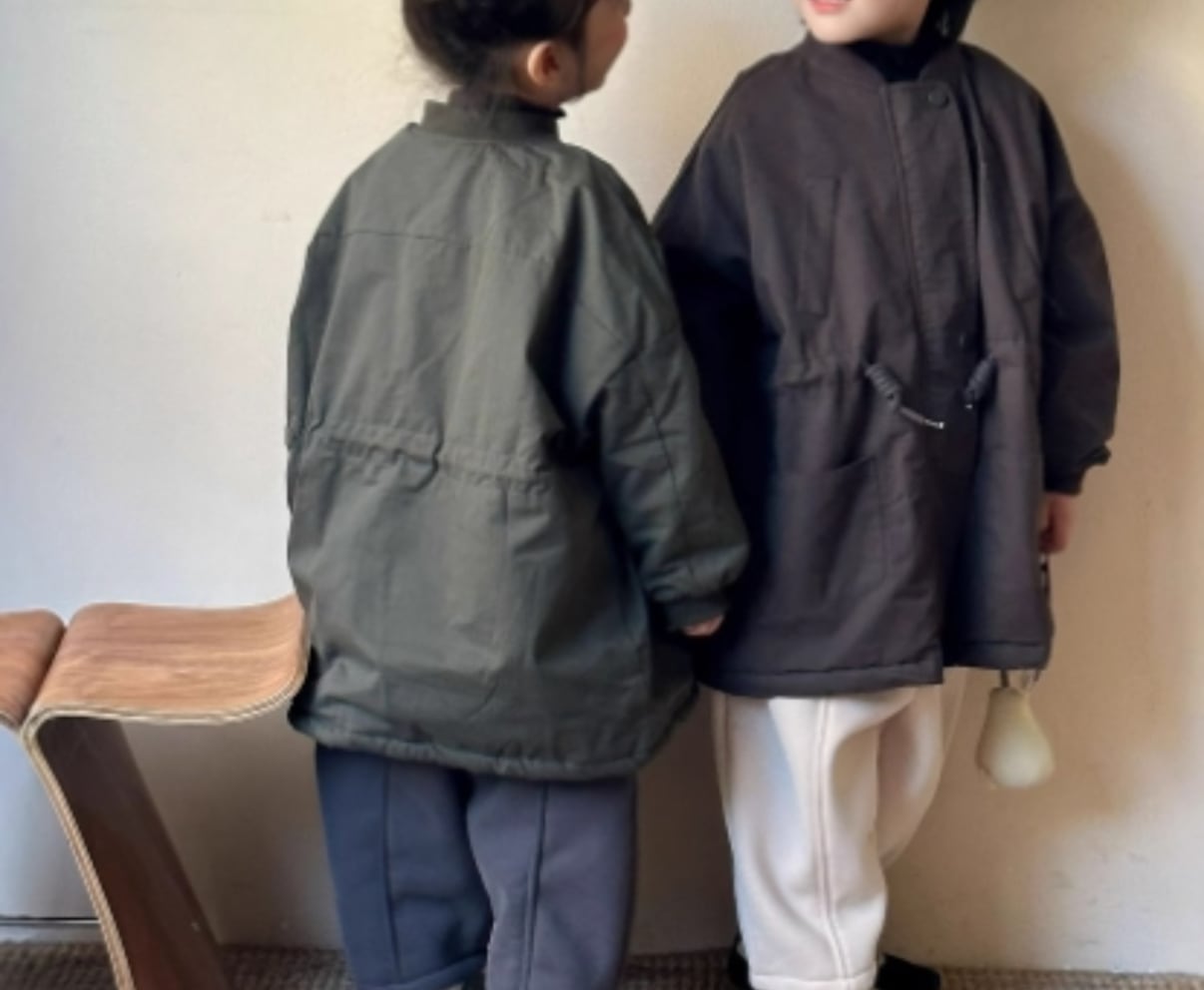 落ち着いたダークブラウンカラーが特徴のキッズ用アウター。